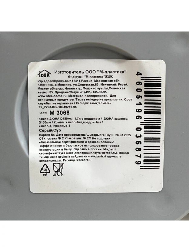 Горшок для цветов пластик, 1.7 л, 15х14 см, с поддоном, серый, Idea, Дюна, М 3068