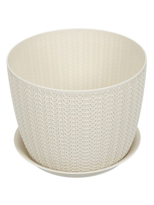Горшок для цветов пластик, 1.9 л, 15.5х12 см, белый ротанг, Idea, Вязание, М 3120