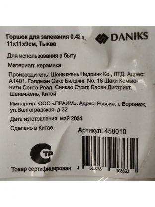 Горшок для запекания керамика, 0.42 л, 11х11х9см, Daniks, Тыква, Y4-7974/Y6-10217