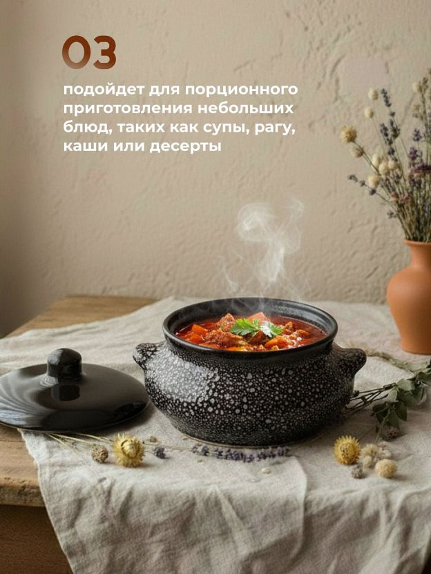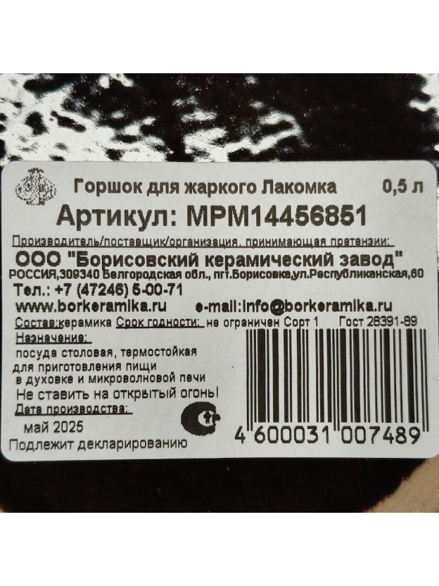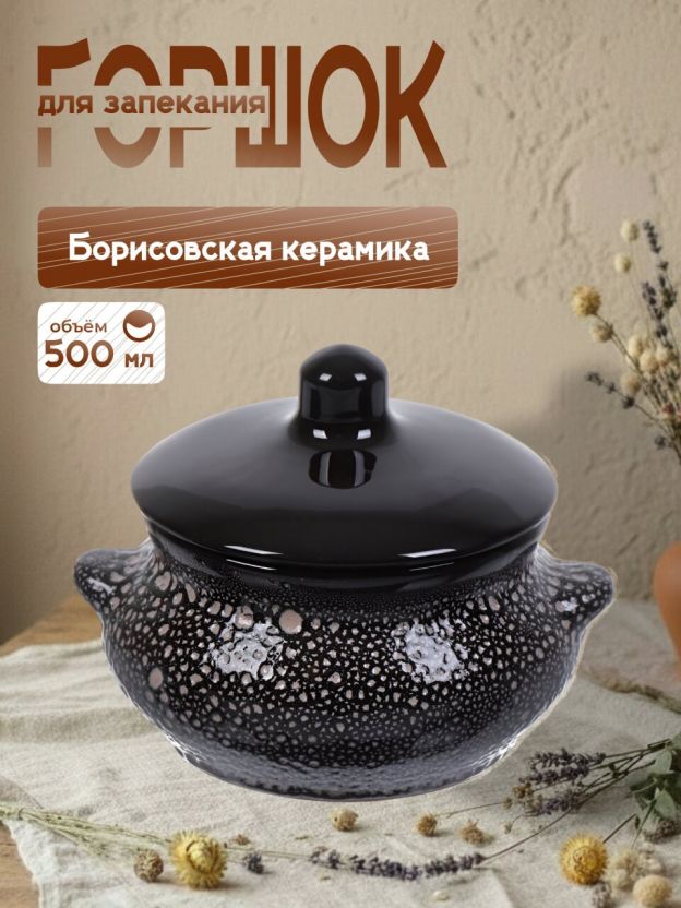 Горшок для запекания керамика, 0.5 л, Борисовская керамика, Мрамор Лакомка, МРМ14456851