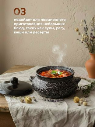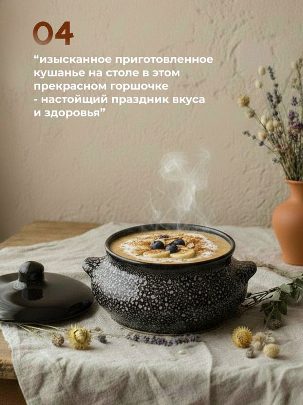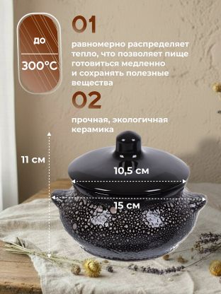 Горшок для запекания в духовке Лакомка из прочной и экологичной керамики. Благодаря особой форме, во время готовки горшок нагревается равномерно, а блюда получаются сочными, полезными и ароматными. Поверхность горшка защищена от трещин и деформации при воздействии самых высоких температур.