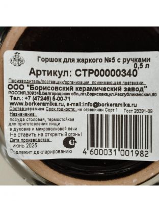 Горшок для жаркого с ручками производства "Борисовской керамики" - это оригинальное дополнение к дизайну вашей кухни.
