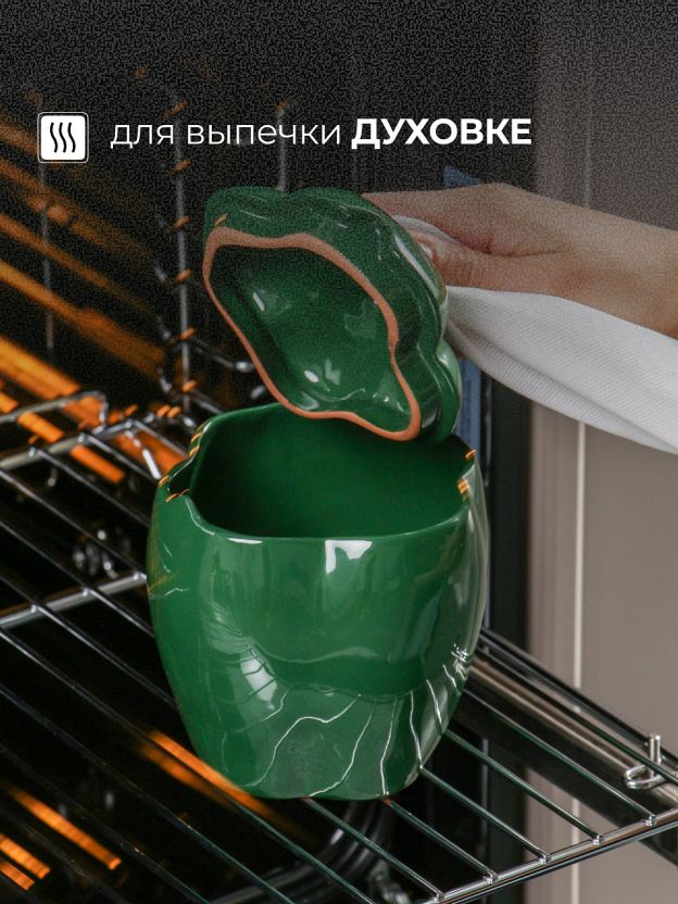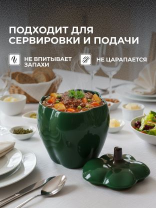 Горшок для жаркого керамика, 0.65 л, зеленый, Борисовская керамика, Перец, ОБЧ00029082