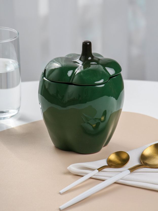 Диаметр горшка — 12 см, высота — 16 см, объём — 0.65 л. В комплекте есть крышка, набор не предусмотрен. Производство — Россия, коллекция Перец, цвет зелёный.