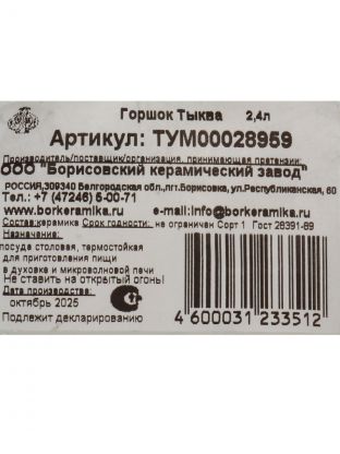 Горшок для жаркого керамический 2.4 л Борисовская керамика Тыква — это универсальная посуда для приготовления и подачи горячих блюд. Благодаря фигурной форме и крышке, жаркое, каши или тушёные овощи долго сохраняют тепло и насыщенный вкус. Керамика обеспечивает равномерное распределение температуры, что важно для томления и получения мягкой текстуры продуктов. Как выбрать горшок для жаркого? Обратите внимание на объём: 2.4 литра оптимально для семьи из 3-5 человек или приготовления на несколько порций.