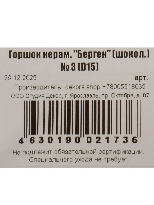Горшок керам, 1.8 л, Берген № 3, шоколад — стильное решение для домашних и дачных растений: защита корней, долговечность, уютный дизайн по выгодной цене.