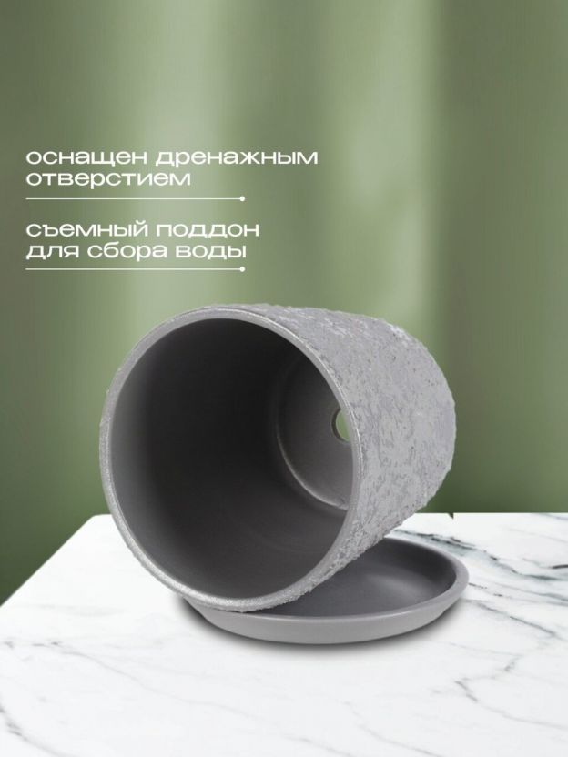Горшок керамика, 2.6 л, 18х18.5 см, серый, Лава №4, 010334