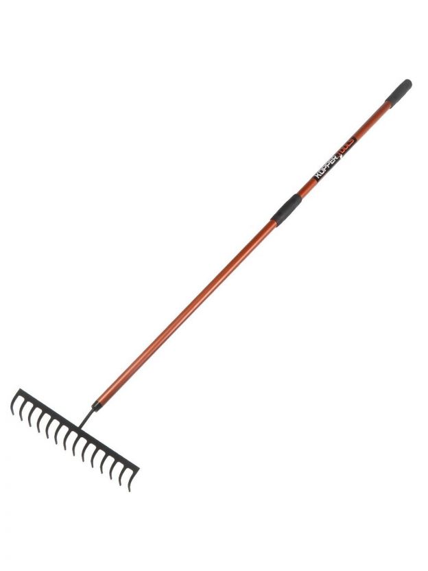 Грабли прямые, 14 зуб, металл, 36 см, Kopper Tools, черенок алюминиевый, ФИ.015.000