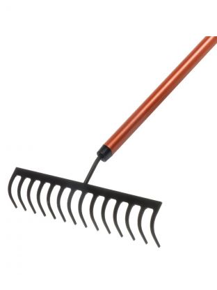 - Прочность: прямые грабли с 14 зубьями изготовлены из каленой металлической рабочей части толщиной 2.5 мм, что обеспечивает высокую прочность и долговечность инструмента.
