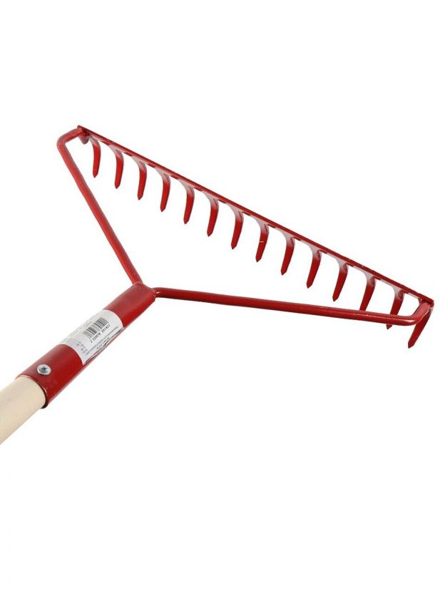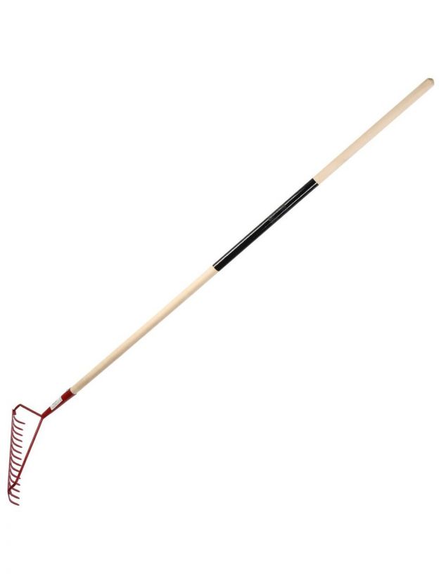 Грабли прямые, 14 зуб, сталь, с выносной тулейкой, садовые, черенок деревянный