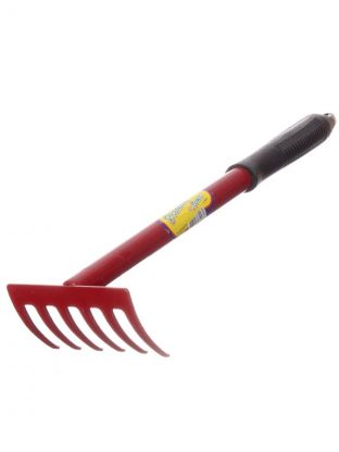 Садовые грабли длиной 32 см с черенком используются для выравнивания грунта, а также очистки садовых участков от различного мусора, скошенной травы и опавших листьев.