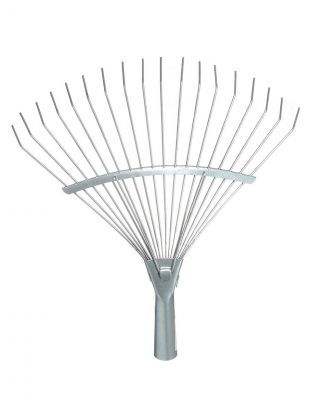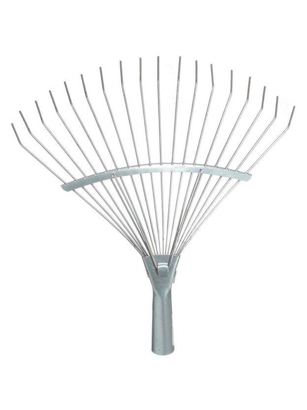 Грабли веерные металлические имеют 18 плоских зуба. Изделие оцинковано, что обеспечивает надежную защиту от коррозии. Расположенная сверху распорка усиливает пружинящий эффект и дополнительно упрочняет конструкцию.