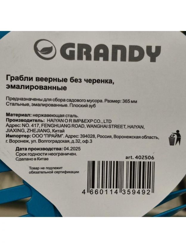 Часто спрашивают: «Как выбрать веерные грабли для дачи?» — обратите внимание на количество зубцов и материал. Модель Grandy сочетает оптимальное число зубьев и прочный металл, что выгодно отличает её от пластиковых аналогов, которые могут ломаться при нагрузке. Если вам важно купить недорого грабли веерные для дачи, обратите внимание на комплектацию без черенка: это позволяет подобрать удобную рукоятку по своему усмотрению и сэкономить на покупке.