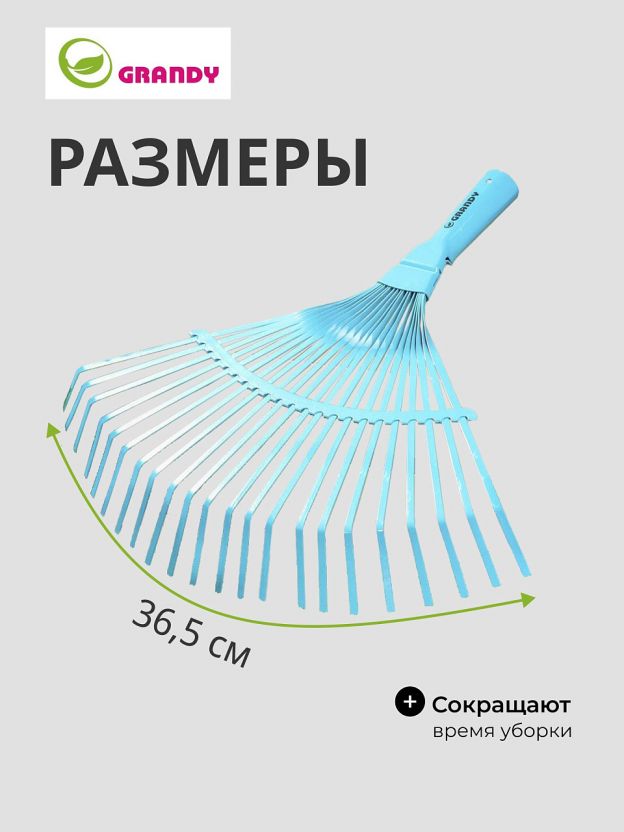 Грабли веерные Grandy 22 зуба: прочный металл, оптимальная ширина 36,5 см — идеальный выбор для быстрой уборки листвы на даче и в саду