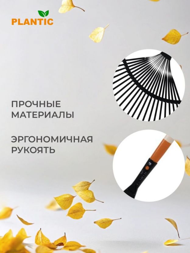 Садовый инструмент предназначен для сбора сухих листьев, мелких веток, травы и другого мусора, который накапливается на газонах и в садах.