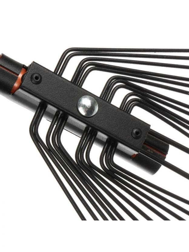 Грабли веерные с 22 металлическими зубьями обеспечивают превосходную производительность и долговечность. Металлическая конструкция гарантирует, что инструмент выдержит даже самые сложные задачи, от сбора листьев до выравнивания почвы. Длина 53 см делает их удобными в использовании и транспортировке, что особенно важно для тех, кто ценит компактность и маневренность.
