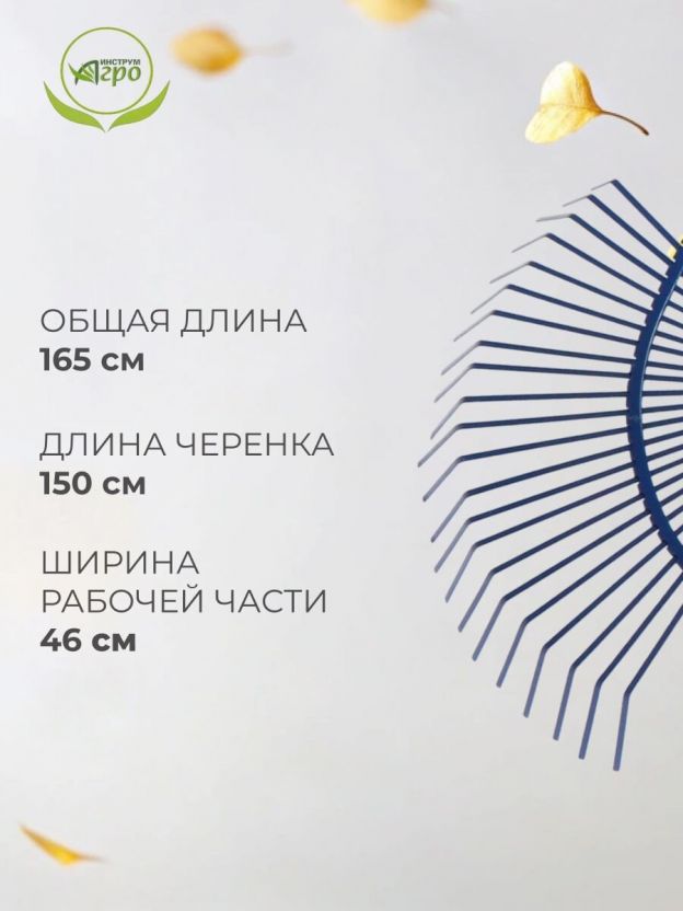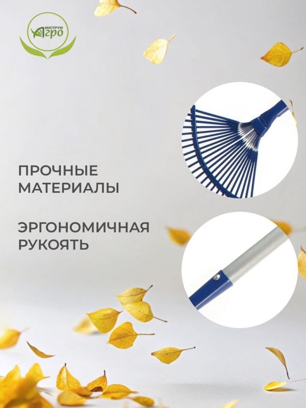 Грабли веерные, 22 зуб, металл, Инструм-Агро, Форсаж, пластинчатые, черенок алюминиевый, 012502