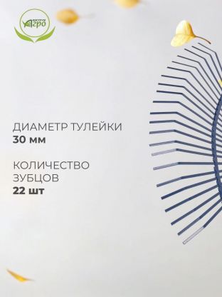 Без черенка, количествво зубьев - 22, материал - пружинистая сталь в порошковой окраске, диаметр тулейки 30мм. Для уборки листьев и мусора на садовом и дачном участке. Конструкция - нескладные, тип - веерные, пластинчатые.