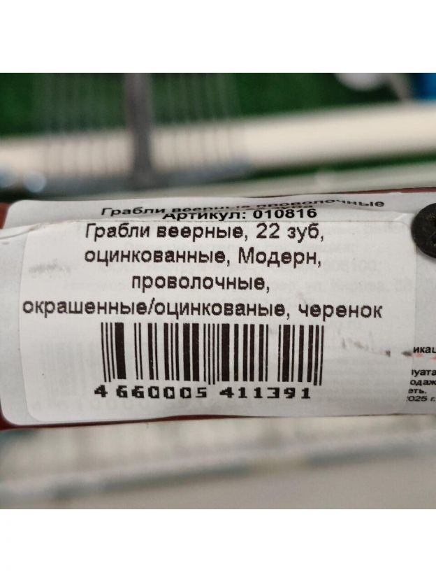 Грабли веерные, 22 зуб, оцинкованные, Модерн, проволочные, окрашенные/оцинкованые, черенок деревянный