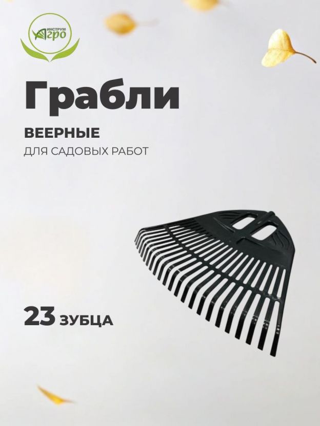 Грабли веерные, 23 зуб, пластик, 50 см, Инструм-Агро, Гардения, черные, 010821