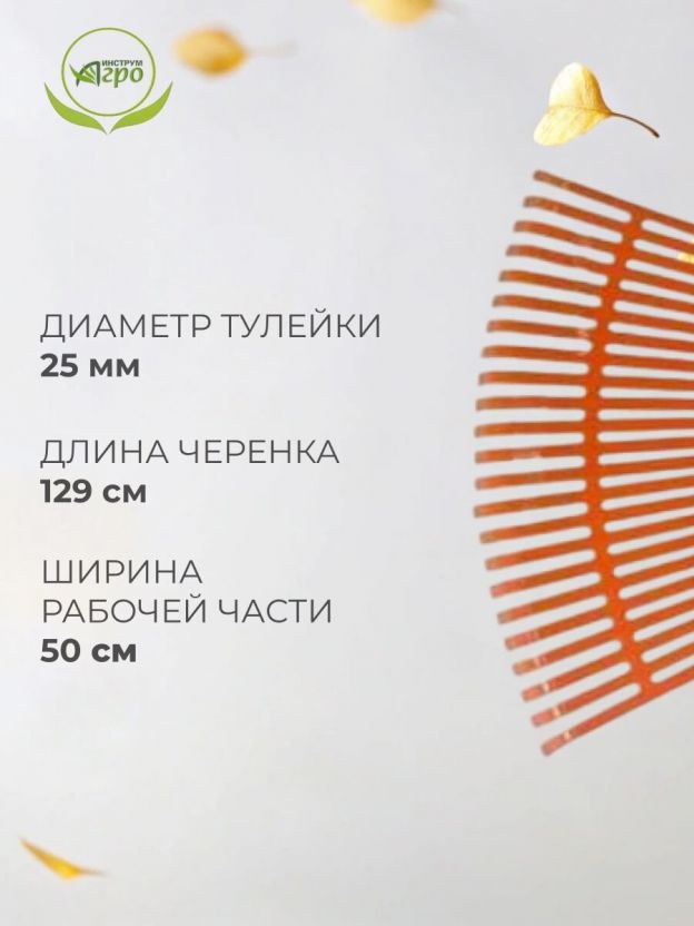 Грабли веерные, 23 зуб, пластик, 50 см, Инструм-Агро, Гардения, оранжевые, черенок алюминиевый, 010820-2