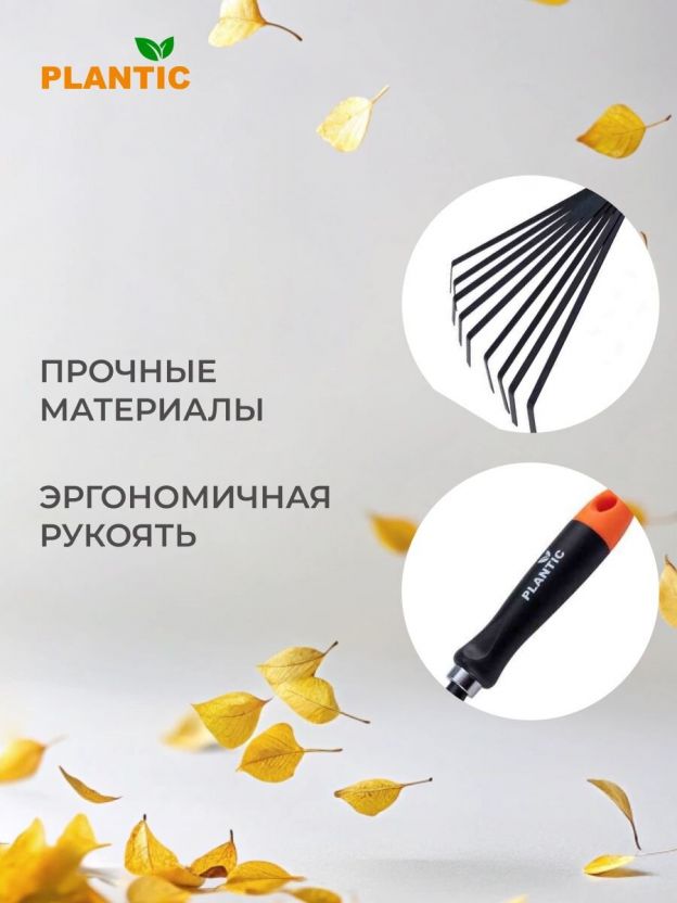 Грабли веерные, 9 зуб, углеродистая сталь, 15.5 см, Plantic, Terra, черенок пластиковый, 36300-01