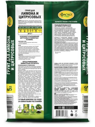 Какой состав у грунта для цитрусовых 5 л?