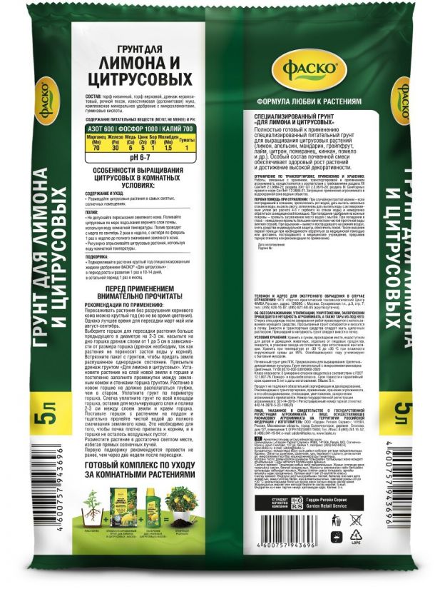 Повысьте урожайность и здоровье ваших цитрусовых — закажите обогащённый грунт 5 л с быстрой доставкой по выгодной цене. Гарантируем свежесть и соответствие стандартам качества.