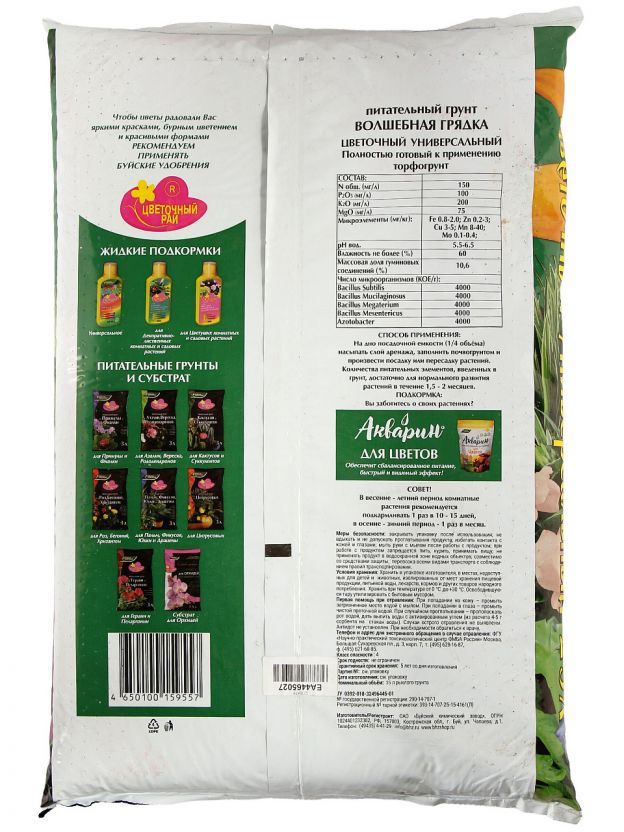 • Удобная фасовка 25 л — хватает на несколько горшков или клумб, легко транспортировать и хранить