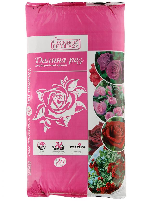 Повысьте эффективность ухода за растениями — закажите грунт Четыре сезона "Долина роз" 20л по выгодной цене и получите здоровые, ярко цветущие розы уже в этом сезоне.