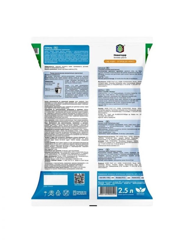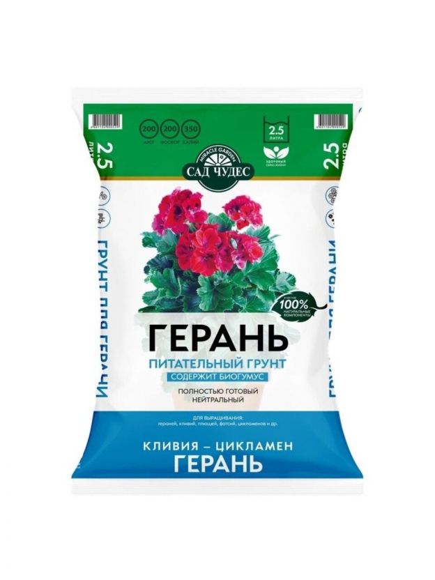 В составе грунта Герань достаточное количество песка, что придает ему необходимую плотность, и высокое содержание питательных элементов.