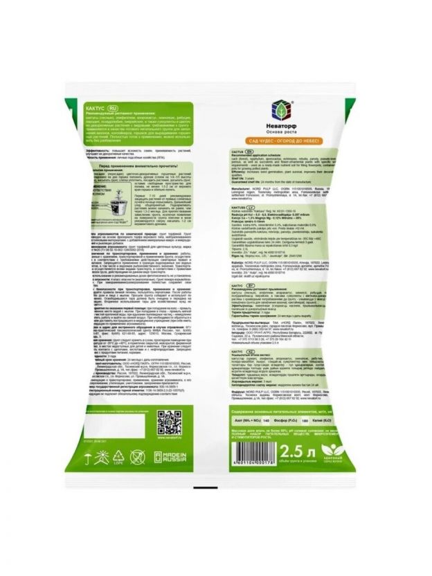 Почвогрунт полностью готовый нейтральный, повышенной плотности с добавлением мраморного отсева для оптимального содержания кальция, керамзитового отсева и песка, с пониженным содержанием элементов питания. Особенно эффективен для выращивания кактусов: опунция, лобивия , мамиллярия, цереус, гимнокалициум, нотокактус, астрофитум и другие.