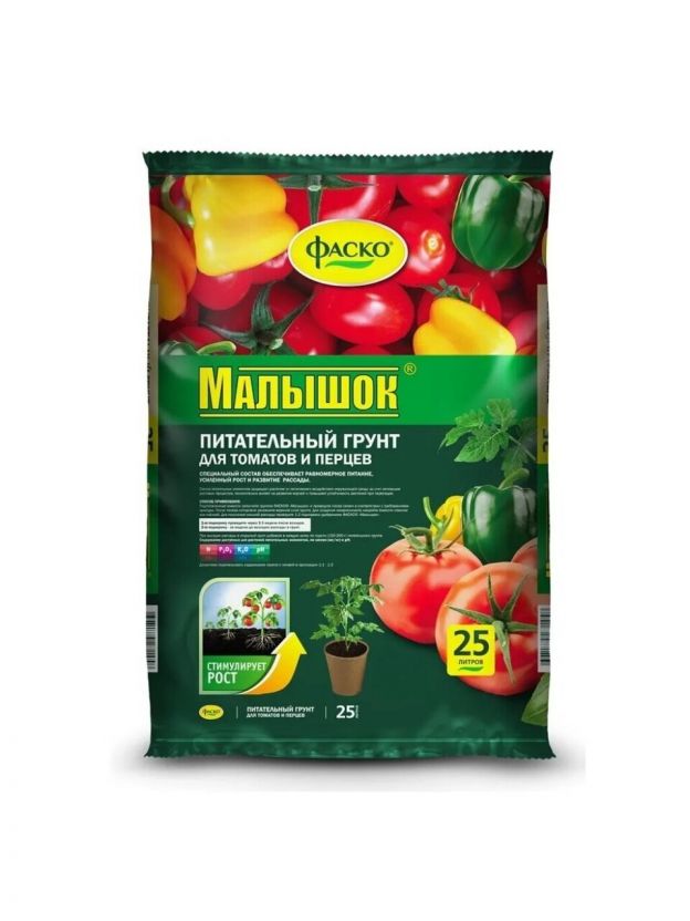 Состав грунта ФАСКО® специально подобран для удовлетворения потребностей пасленовых культур, направлен на получение богатого здорового урожая.
