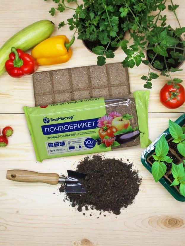 Почвобрикет БиоМастер «Универсальный» - экологически чистый прессованный грунт для применения в личном подсобном хозяйстве. В составе смеси - торф, вермикулит и сбалансированные компоненты, которые обеспечивают оптимальные условия для развития корневой системы, роста побегов, цветения и плодоношения растений. Смесь термически обеззаражена и не содержит болезнетворных бактерий, грибков и вредителей. Страна производства товара - Россия.