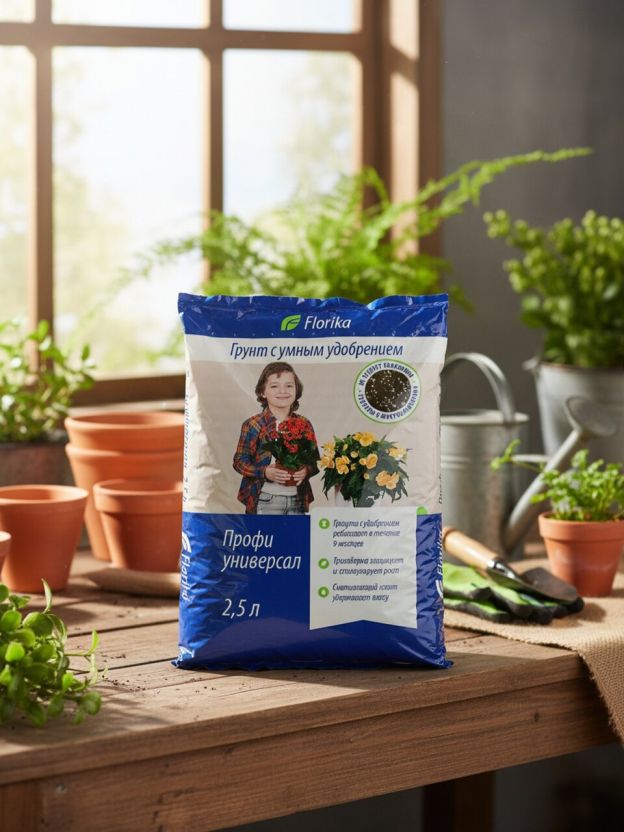 Грунт Флорика "Профи Универсал" 2,5 л — универсальный субстрат для комнатных и садовых растений: оптимальный состав, удобный формат, максимальный рост без хлопот.