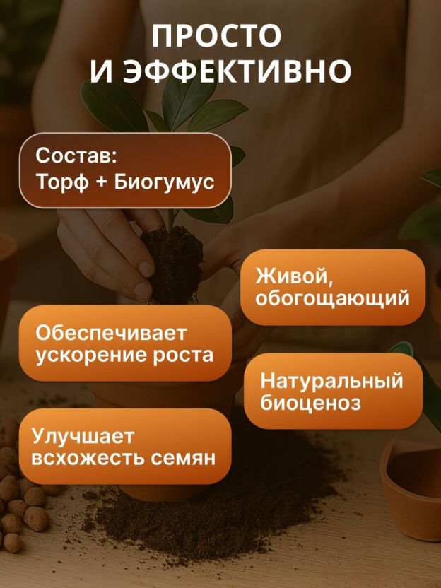 Живая земля! Полностью готовый питательный грунт применяется для посадки и пересадки всех видов цветочных и декоративных культур, выращивания рассады и укоренения черенков.
