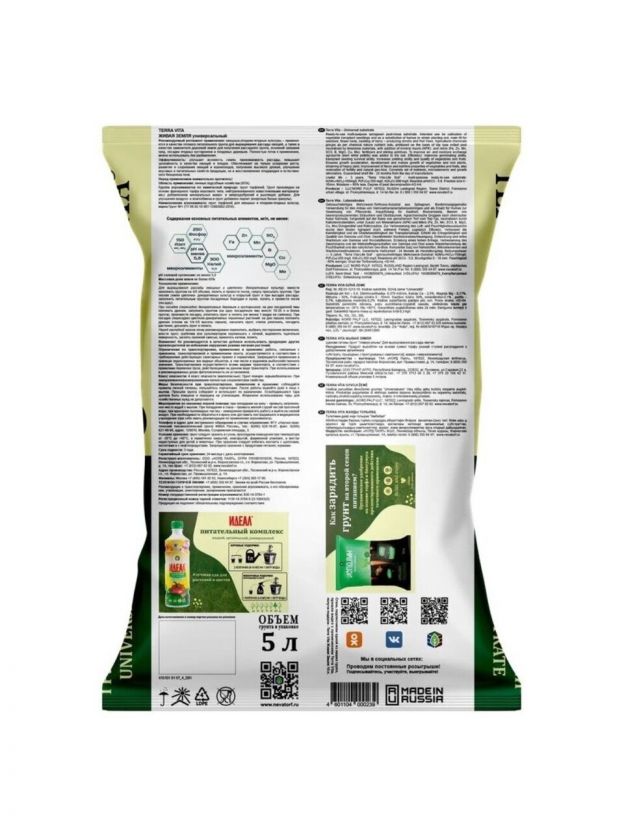 Грунт Живая земля, универсальный, 5 л, Terra Vita
