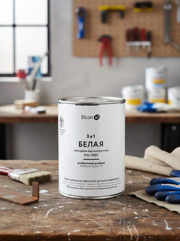 Грунт-эмаль Elcon 3в1 по ржавчине, белая RAL 9003, 0.8 кг — быстрое решение для защиты и обновления металла без лишних слоёв и затрат.