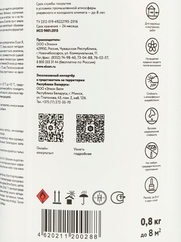 - Плотное покрытие 0,8 кг на разные поверхности: железо, алюминий, бетон, кирпич.