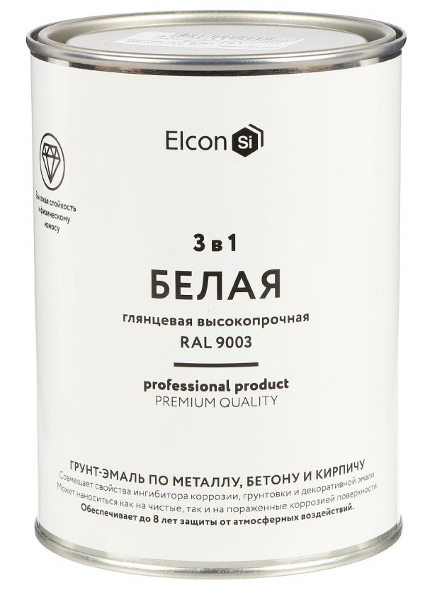 Грунт-эмаль Elcon, 3в1 глянцевая, по ржавчине, алкидная, белая, RAL 9003, 0.8 кг