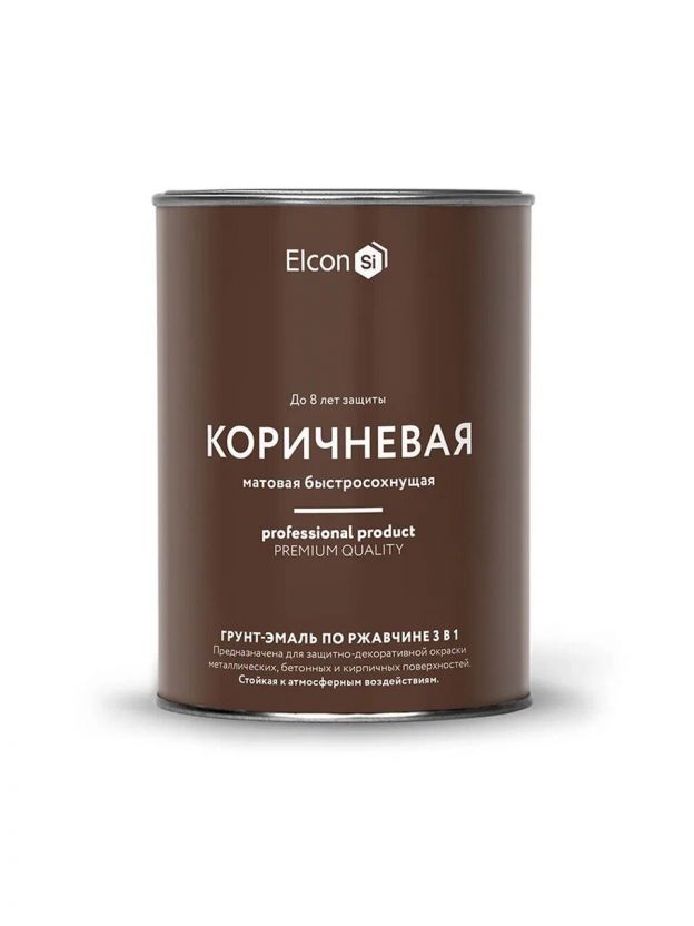 Грунт-эмаль Elcon, 3в1 матовая, по ржавчине, смоляная, коричневая, RAL 8017, 0.8 кг
