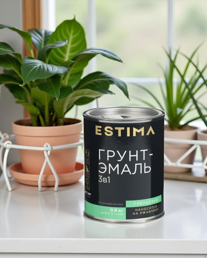 Грунт-эмаль Estima по ржавчине — идеальное решение для защиты и обновления металлических поверхностей. Это продукт 3 в 1: грунт, эмаль и антикоррозийное покрытие. Подходит для железа, стали, ворот и заборов. Используется как для внутренних, так и для наружных работ. Обладает атмосферостойкостью и износостойкостью, обеспечивая долгий срок службы покрытий.