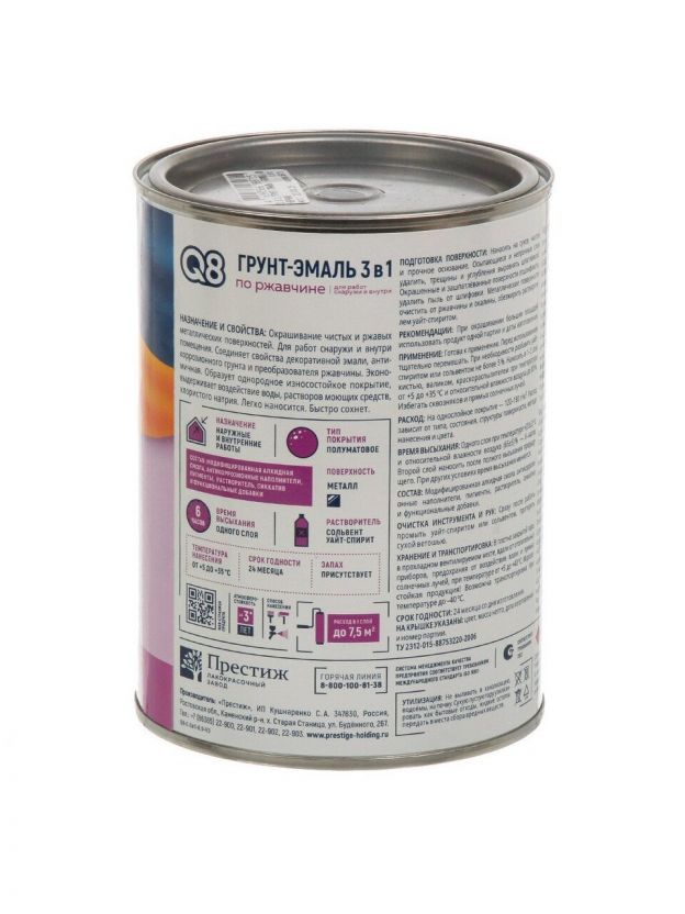 Грунт-эмаль Formula Q8 — идеальное решение для защиты металлических поверхностей от ржавчины. Алкидная основа и черный цвет придают покрытиям матовый, гладкий эффект, создавая стильное и долговечное покрытие. Подходит для использования как внутри, так и снаружи помещений.