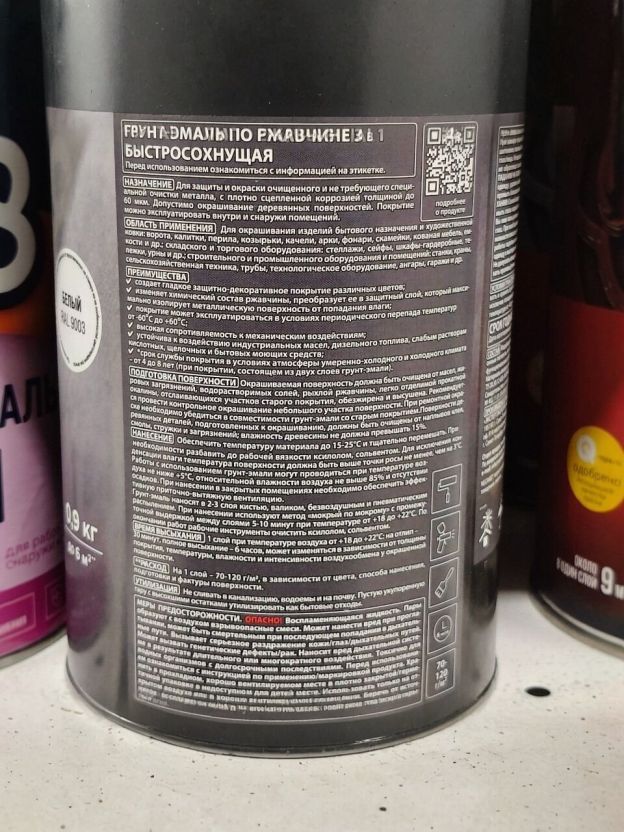 - Состав: модифицированный алкидный лак, антикоррозионные пигменты, наполнители, органический растворитель, функциональные добавки.
