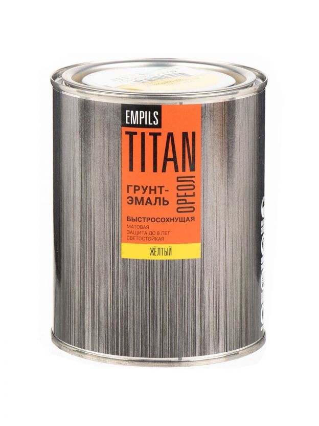 Грунт-эмаль Ореол, Титан, быстросохнущая, алкидная, матовая, желтая, RAL 1023, 0.9 кг