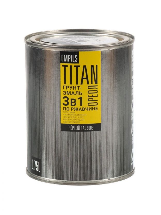 Грунт-эмаль Ореол, Титан, по ржавчине, алкидная, черная, RAL 9005, 0.75 кг