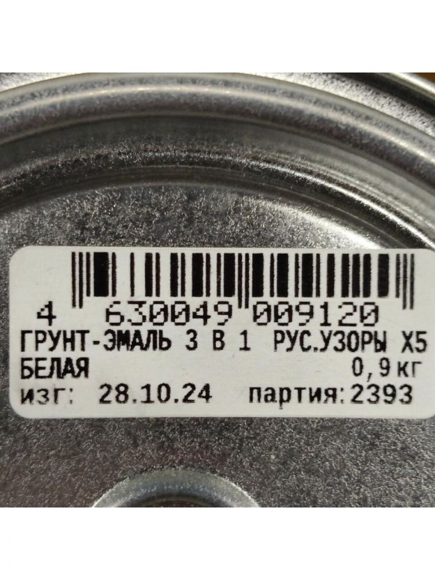 Грунт-эмаль Русские узоры, 3 в 1, по ржавчине, быстросохнущая, алкидная, белая, 0.9 кг
