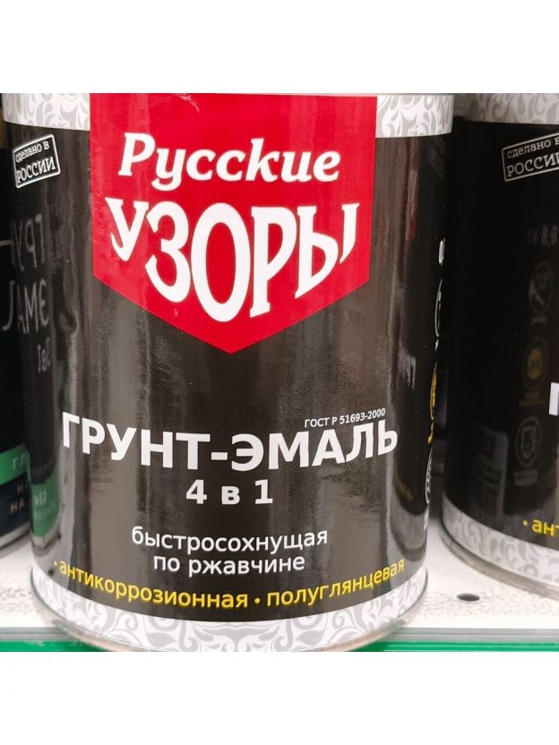 Грунт-эмаль Русские узоры, 4в1, по ржавчине, быстросохнущая, алкидная, полуглянцевая, серая, 0.8 кг