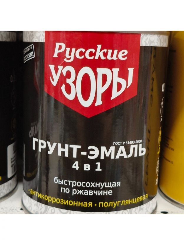 Грунт-эмаль Русские узоры, 4в1, по ржавчине, быстросохнущая, алкидная, полуглянцевая, синяя, 0.8 кг