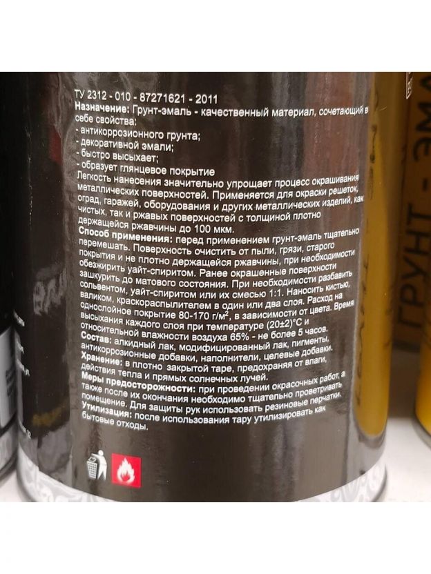 Состав: алкидный лак, модифицированный лак, пигменты, антикоррозионные добавки, наполнители, целевые добавки.
